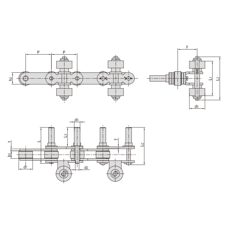 - Composto da piastre di catena, perni, giunti trasversali a blocchi articolati e gruppi di rulli (rulli, cuscinetti, perni), garantisce flessibilità, durata ed elevata efficienza.