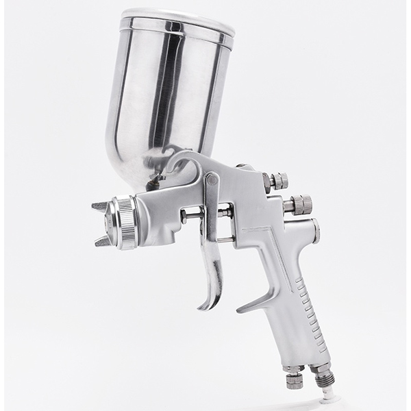 Combinando l’aria compressa con la vernice, l’alta pressione dell’aria viene utilizzata per atomizzare la vernice liquida in minuscole goccioline e spruzzarle sulla superficie dell’oggetto da verniciare. Gli ugelli e i passaggi dell’aria all’interno della pistola sono ben progettati per disperdere rapidamente la vernice quando l’aria compressa passa attraverso la pistola e viene spruzzata sotto forma di atomizzazione fine. La pistola può ottenere diversi effetti di spruzzatura regolando la pressione dell’aria, il design dell’ugello e la combinazione del flusso di vernice. La potenza dell’aria non solo aiuta le particelle di vernice a disperdersi in una nebbia uniforme, ma assicura anche una copertura uniforme della superficie spruzzata.