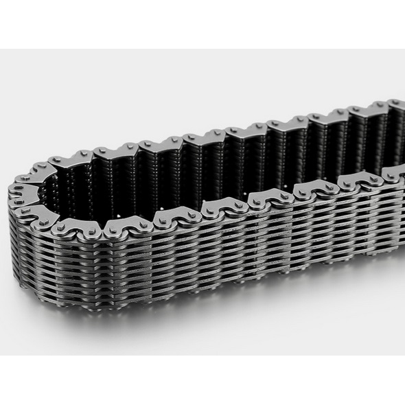 - La variante con catena dentata a doppio passo offre una soluzione leggera per applicazioni con piccola potenza trasferita, bassa velocità e lungo interasse di trasmissione.