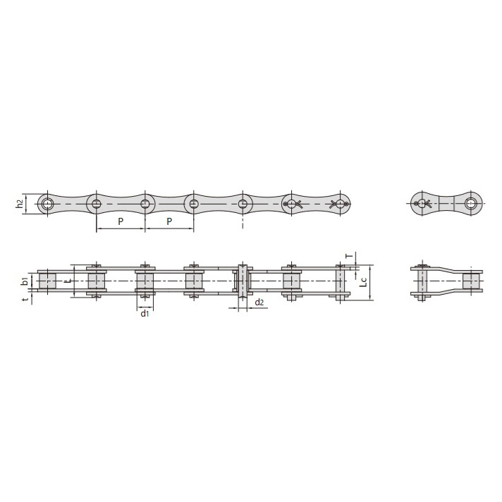 - Design a doppio passo:Il passo della catena è doppio rispetto a quello delle catene a rulli a passo corto standard, per cui è più leggero pur mantenendo la resistenza. Ideale per distanze di trasporto più lunghe, velocità più basse e distanze più elevate tra i centri di trasmissione.