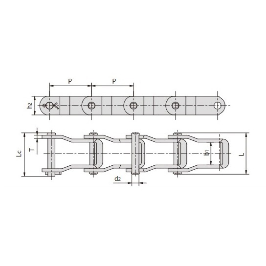 • Struttura speciale della catena realizzata con maglie in ghisa malleabile collegate da perni in acciaio, senza distinzione tra maglie interne ed esterne per un design semplificato e prestazioni robuste.
